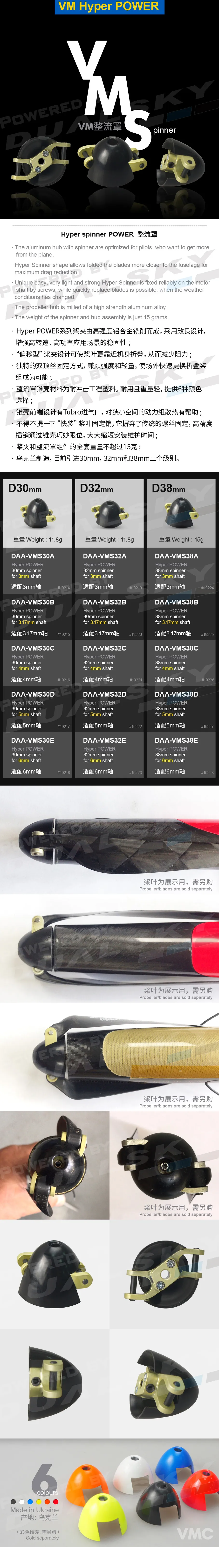Click for More InformationVM F5J Spinner, Hyper POWER 30mm Spinner for 3/3.17/4/5/6mm Shaft - DAA-VMS30...SKU: 1921628,00 €Price